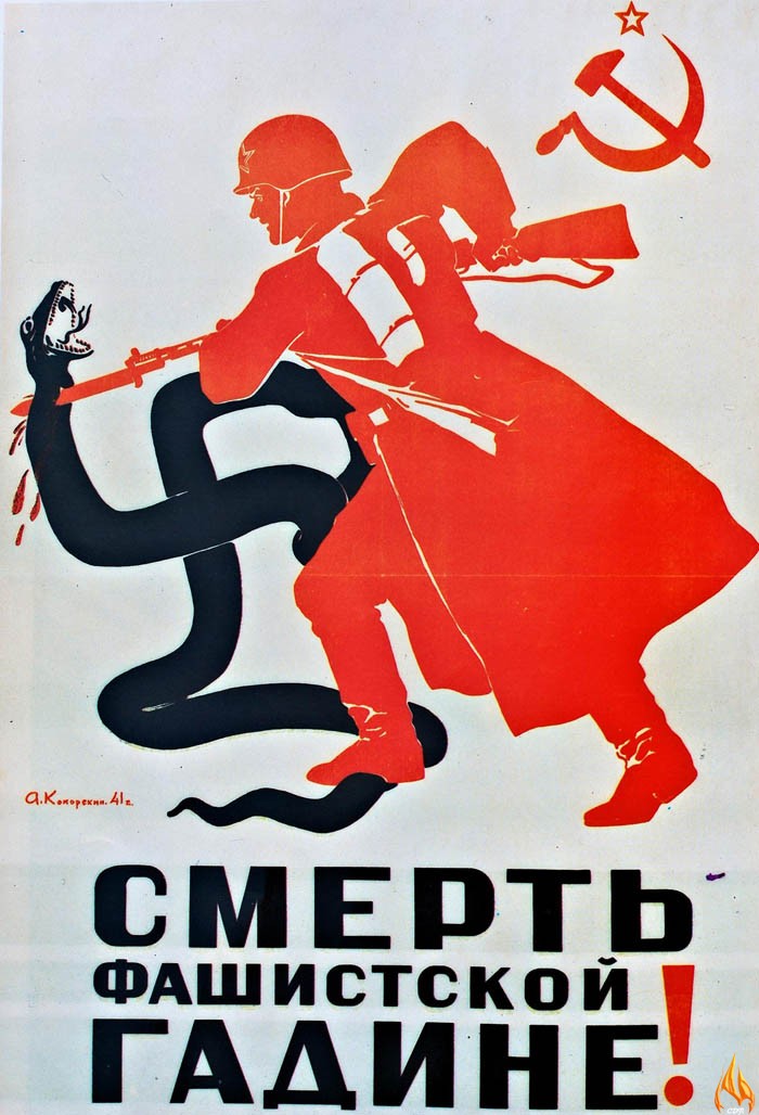В годы Великой Отечественной войны плакаты Москалёва имели сатирическую направленность: «Смерть фашистской гадине».