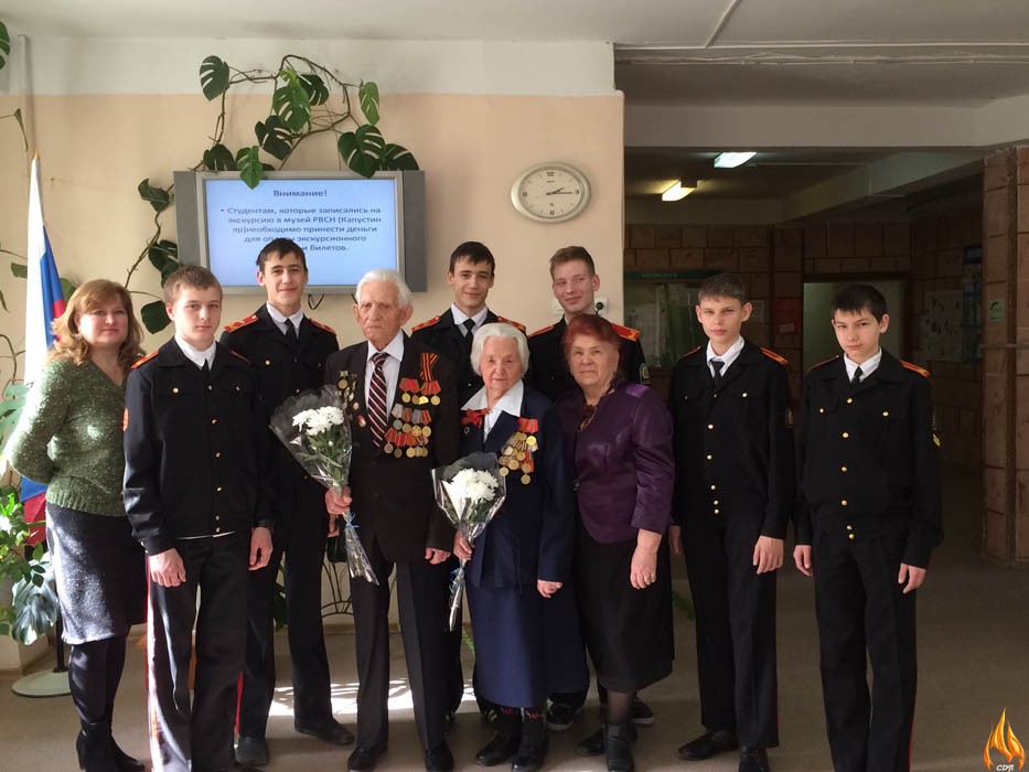 Встреча обучающихся МБОУ кадетская школа имени Героя Российской Федерации С.А. Солнечникова г. Волжского Волгоградской области с ветеранами ВОВ - Грачевым Виктором Ивановичем и Лемякиной Александрой Ивановной.