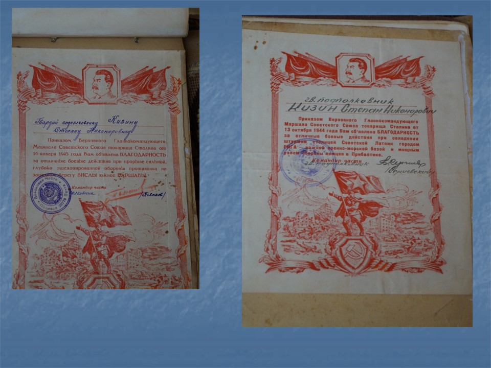 Семейные реликвии Кизина Степана Никоноровича - в июне 1945 года командир 606 минометного полка.