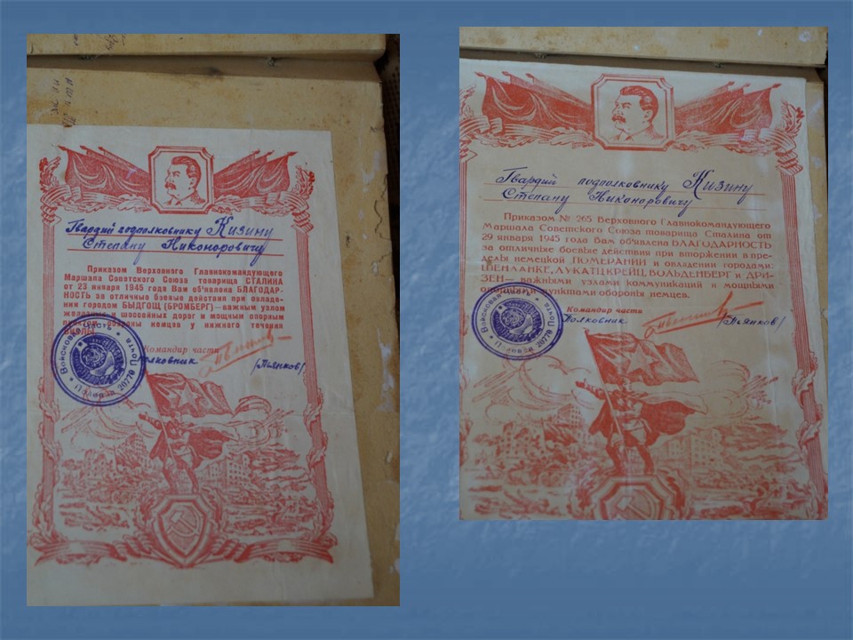 Семейные реликвии Кизина Степана Никоноровича - в июне 1945 года командир 606 минометного полка.