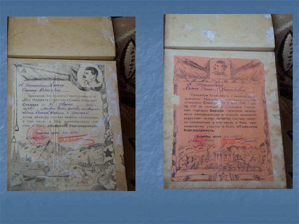 Семейные реликвии Кизина Степана Никоноровича - в июне 1945 года командир 606 минометного полка.