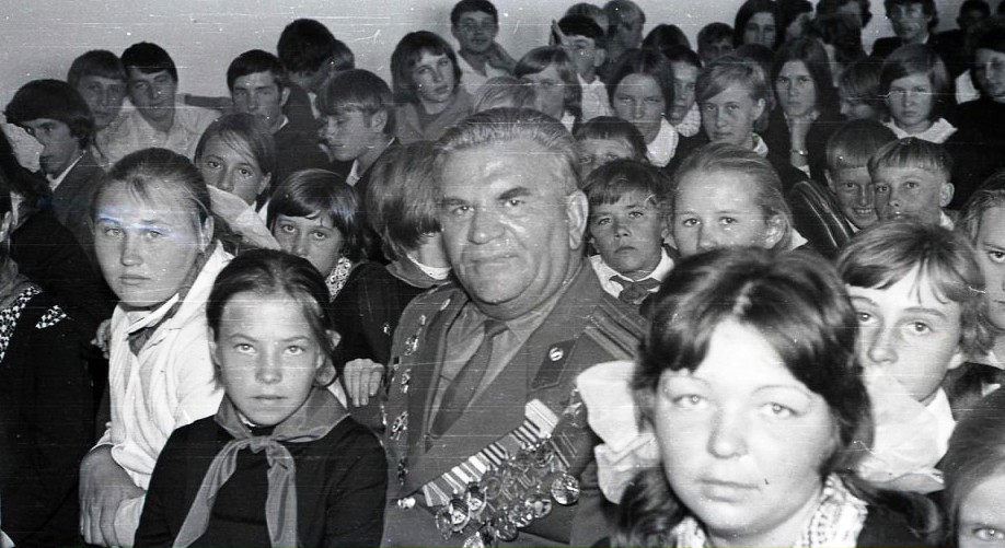 Морозов И.И среди учеников Матышевской средней школы. 1978 год
