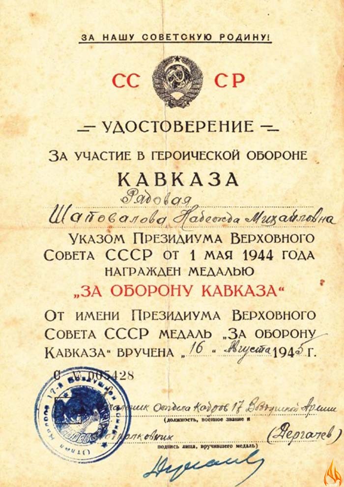 Семейные реликвии Шаповаловой Надежды Михайловны - прошла от Сталинграда до Румынии, где узнала о Победе советских войск над фашистской Германией.