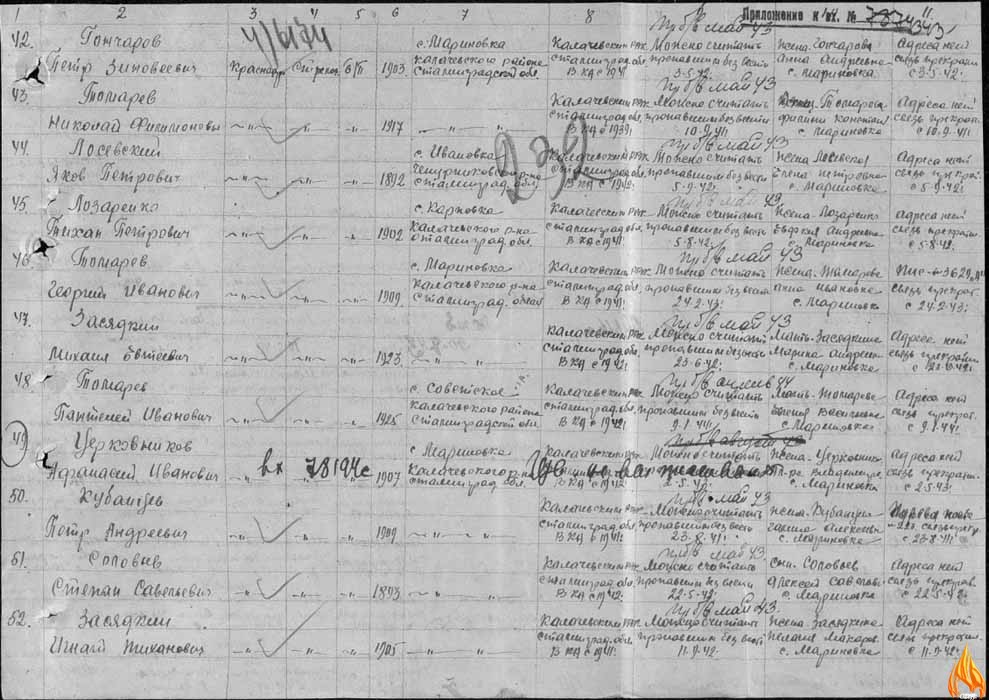 Был призван Калачёвским райвоенкоматом Сталинградской области в 1941 году.