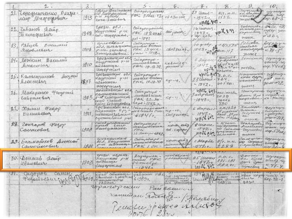 Семейные реликвии Донскова Петра Ивановича Единственные данные, которые получены из источников ЦАМО о призыве в Красную армию.