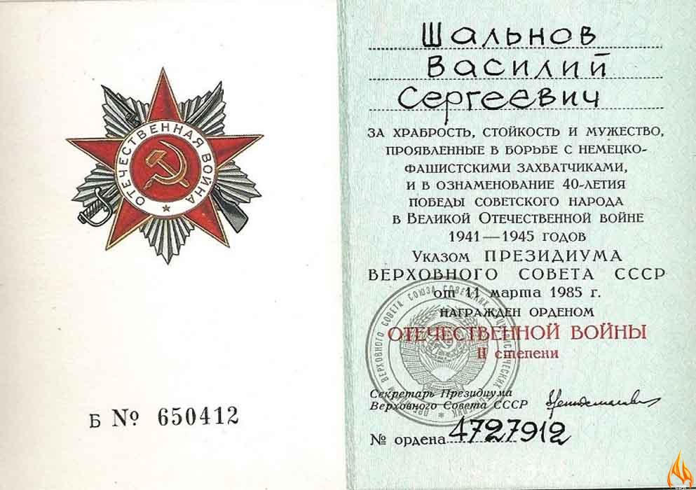 Удостоверение о награждении Орденом Отечественной войны второй степени