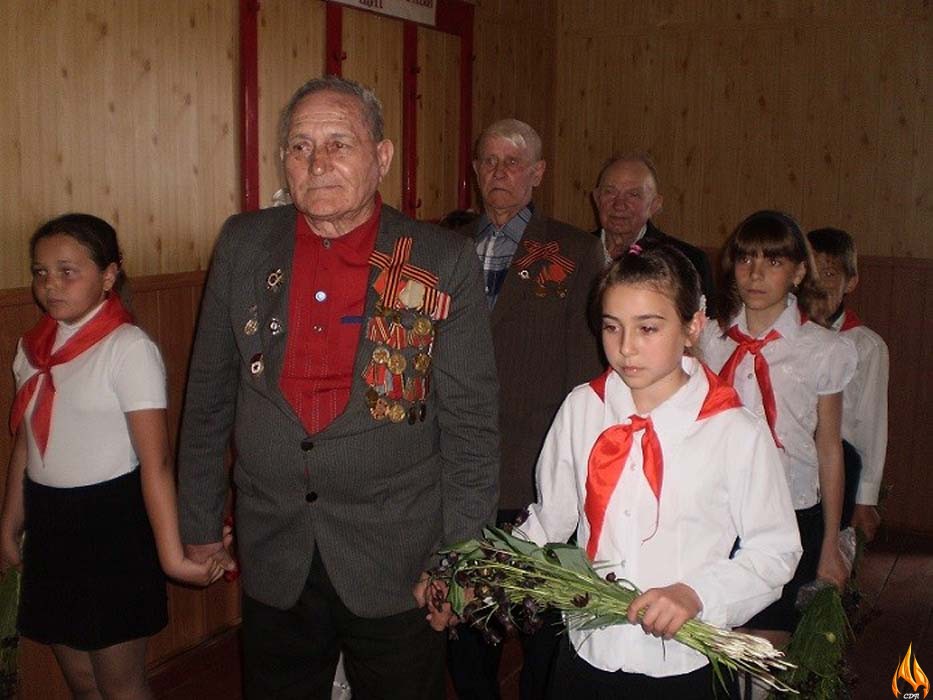 Ветераны и пионеры на мероприятии, посвящённом Дню Победы