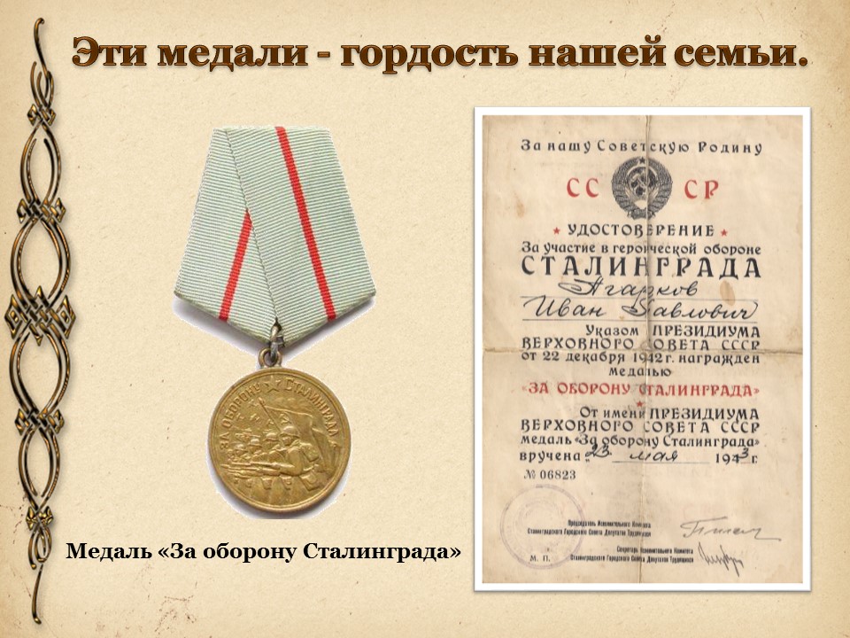 Семейные реликвии Агаркова Ивана Павловича Во время Сталинградской битвы в 1942 году, прадедушка воевал в составе речного флота.
