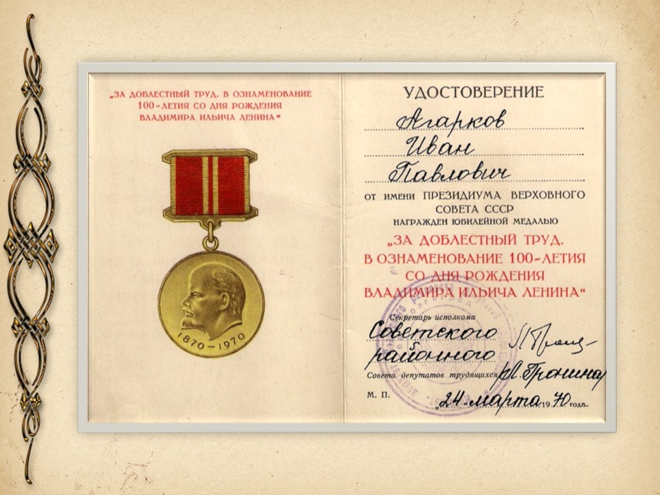 Семейные реликвии Агаркова Ивана Павловича Во время Сталинградской битвы в 1942 году, прадедушка воевал в составе речного флота.