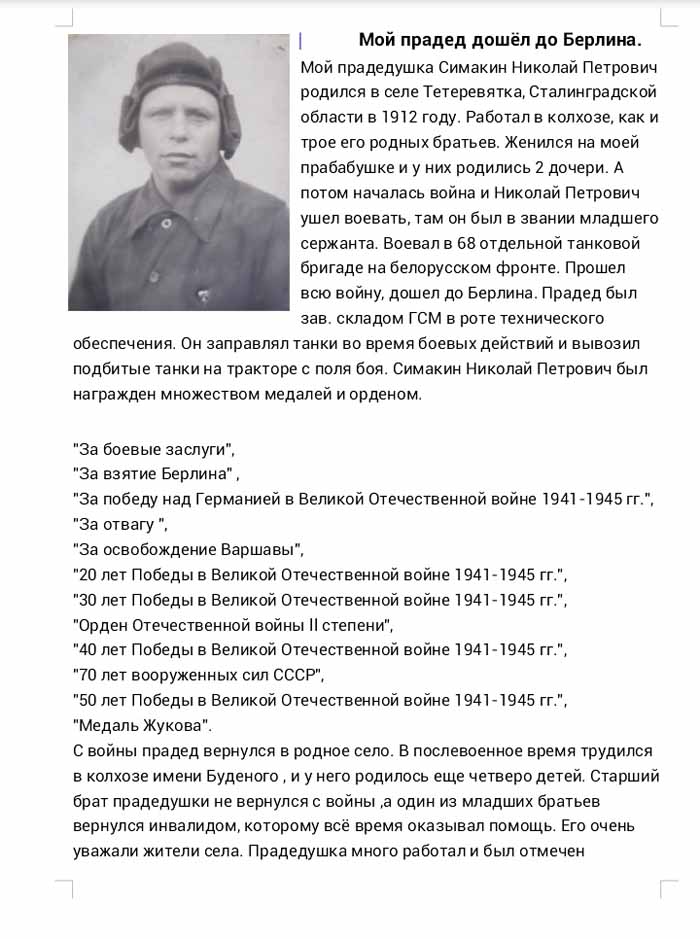 Симакин Николай Петрович - прошел всю войну, дошел до Берлина.