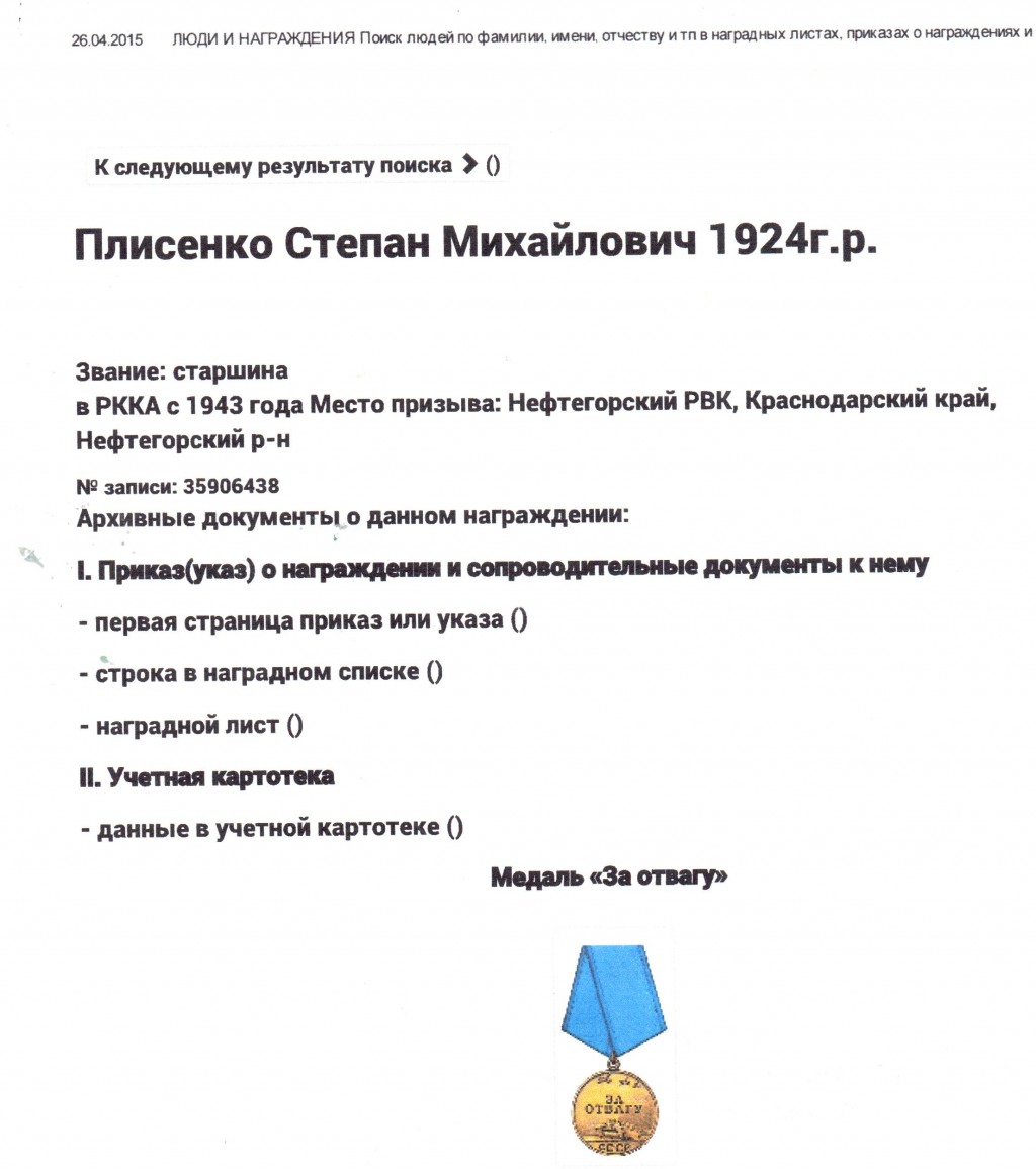 Награда прадеда