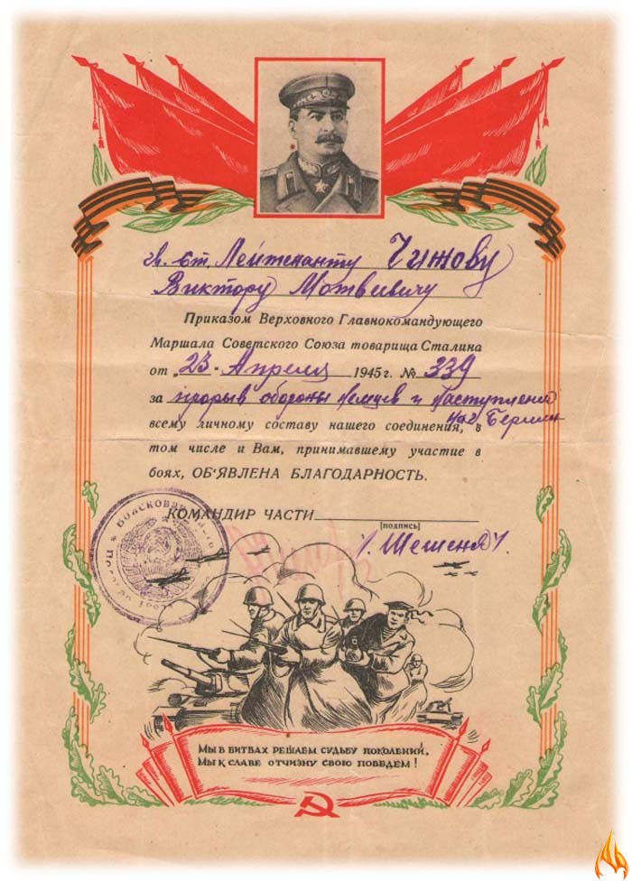 Семейные реликвии Чижова Виктора Матвеевича - Принимал участие в Сражение за Зееловские высоты в рамках Берлинской наступательной операции.