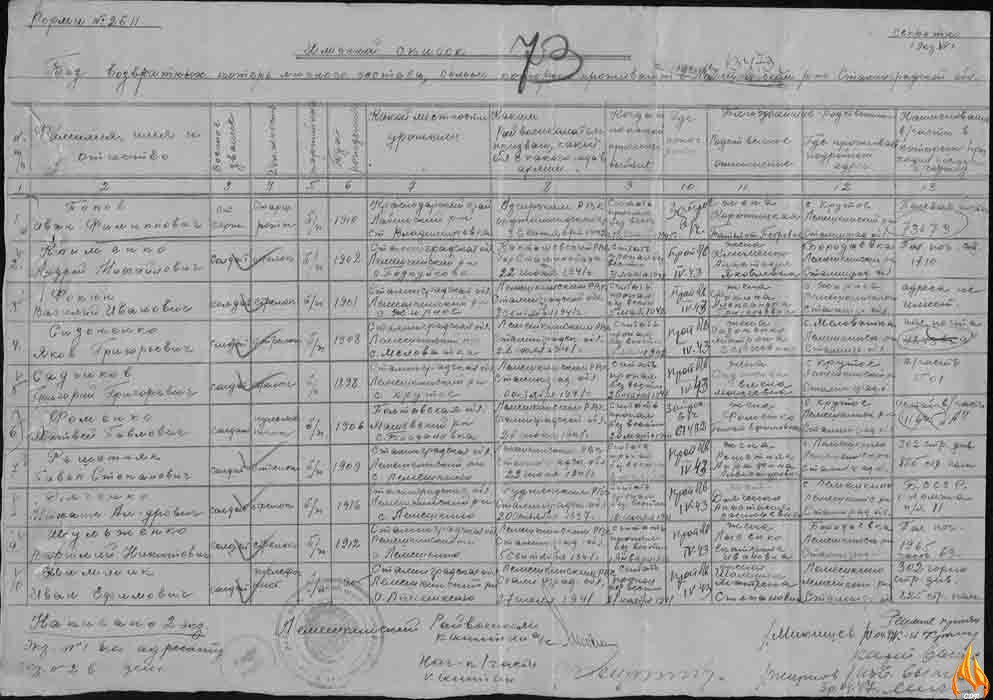 Без вести пропавших бойцов личного состава, семьи которых проживают в Лемешкинском районе Сталинградской области.