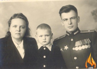 На фото: Мария Михайловна Локтева и Иван Филиппович Колбаса с приемным сыном Володей. Архангельск, 1948 год.