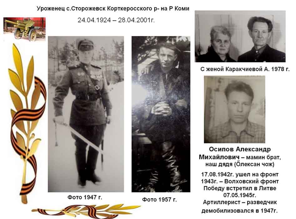 Осипов Александр Михайлович Артиллерист - разведчик, Победу встретил в Литве 07.05.1945 года.