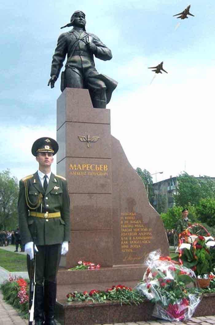 Торжественное открытие памятника состоялось 20 мая 2006 года, в день 90-летия со дня рождения Героя Советского Союза Алексея Петровича Маресьева
