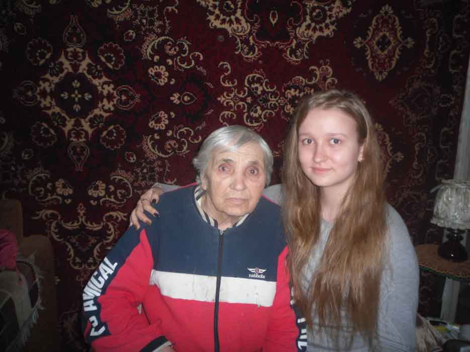 Фотография сделана 9 мая 2016 года во время интервью для работы. Я, Можарова Ангелина, вместе со своей прабабушкой.