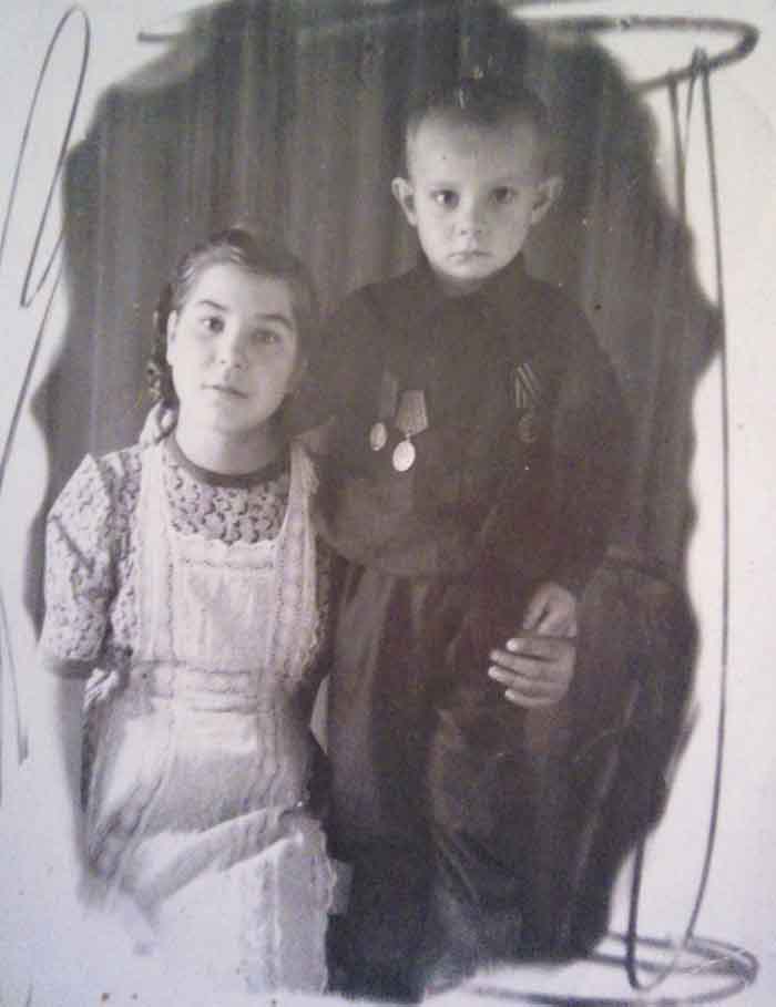 Слева направо: 1– й дочь Галина,2-й сын Александр младший с наградными медалями своего отца Александра