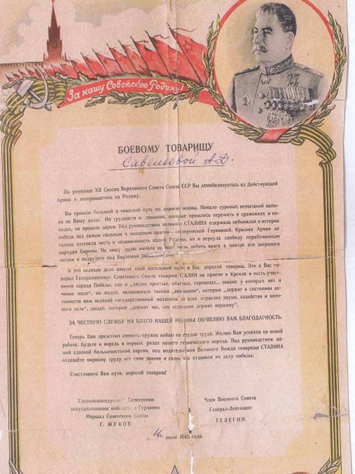 «Благодарность от маршала Г. Жукова от 16 июня 1945 года»