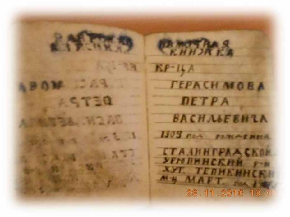 «Памятная книжка» красноармейца Герасимова Петра Васильевича.