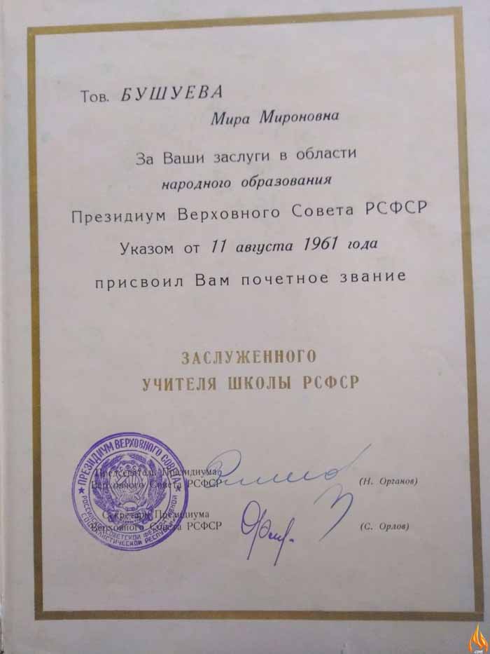 Мира Мироновна награждена медалями «За доблестный труд в Великой Отечественной войне 1941-1945 гг.»