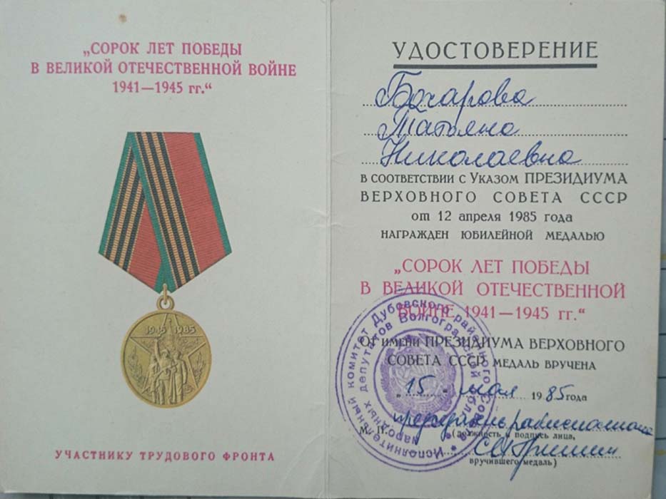 Бочарова Татьяна Николаева Моя прабабушка не сражалась на фронтах ВОВ.