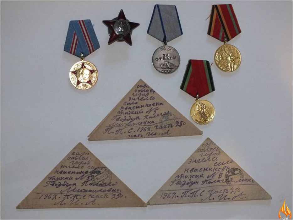 По треугольникам фронтовых писем, сын Виктор пытается представить окопы, в которых они были написаны, узнать места боёв, но имеет только номер части - п.п.с. 1967 часть 250.