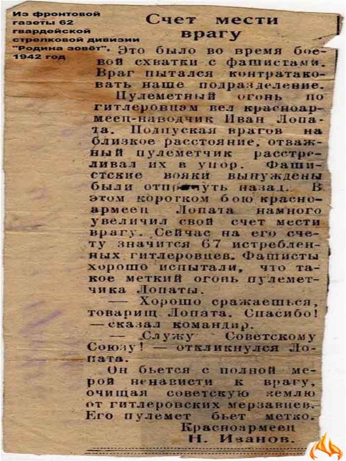 Перед Вами три вырезки из газеты 62-ой гвардейской стрелковой дивизии «Родина зовёт».