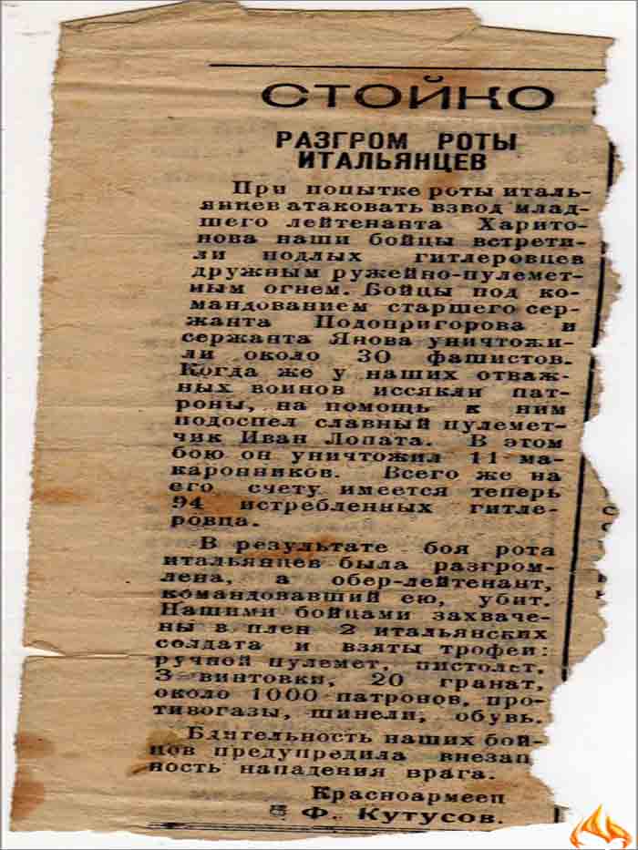 Перед Вами три вырезки из газеты 62-ой гвардейской стрелковой дивизии «Родина зовёт».