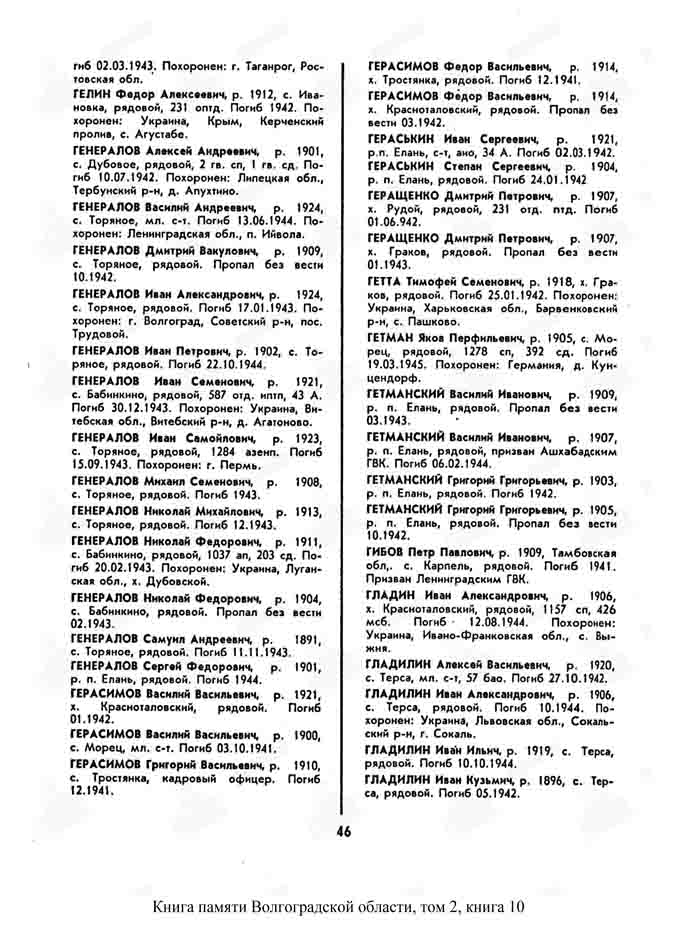 Упоминание его в Книге памяти Волгоградской области.