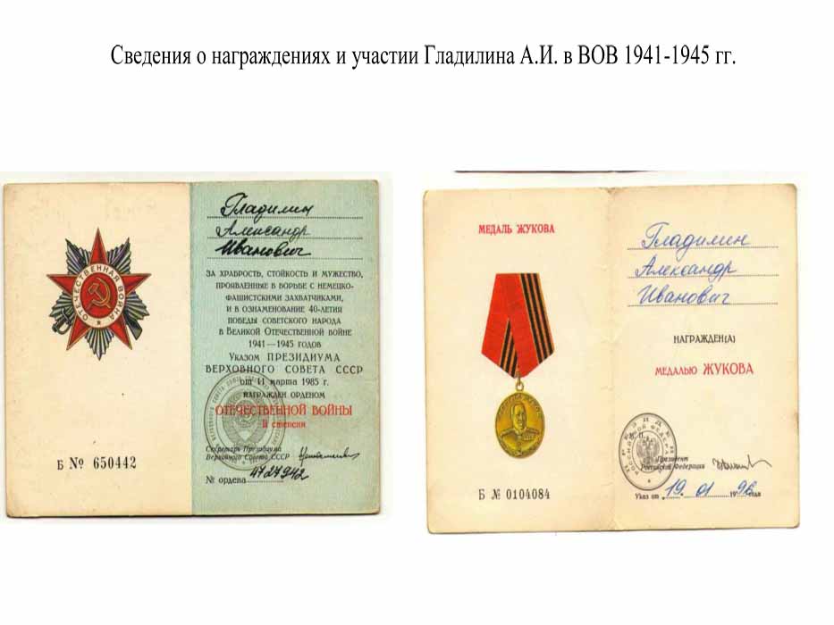 Гладилин Александр Иванович, для него служба в рядах вооруженных сил началась в сентябре 1939 года, а закончилась в 1946 году.
