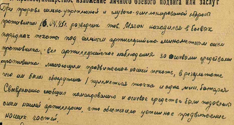 Дата подвига: 16.04.1945 награждён Медалью «За отвагу» (битва за Берлин)