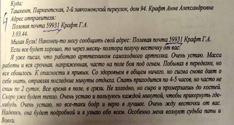Крафт Георгий (Юрий) Александрович Воинское звание - Младший лейтенант Воинская специальность - Техник - лейтенант артиллерийского полка Годы службы - 1939 - 1946 Боевое подразделение - 48 армия, 217 стрелковая дивизия, 29 стрелковый корпус, 881 самоходный артиллерийский полк.