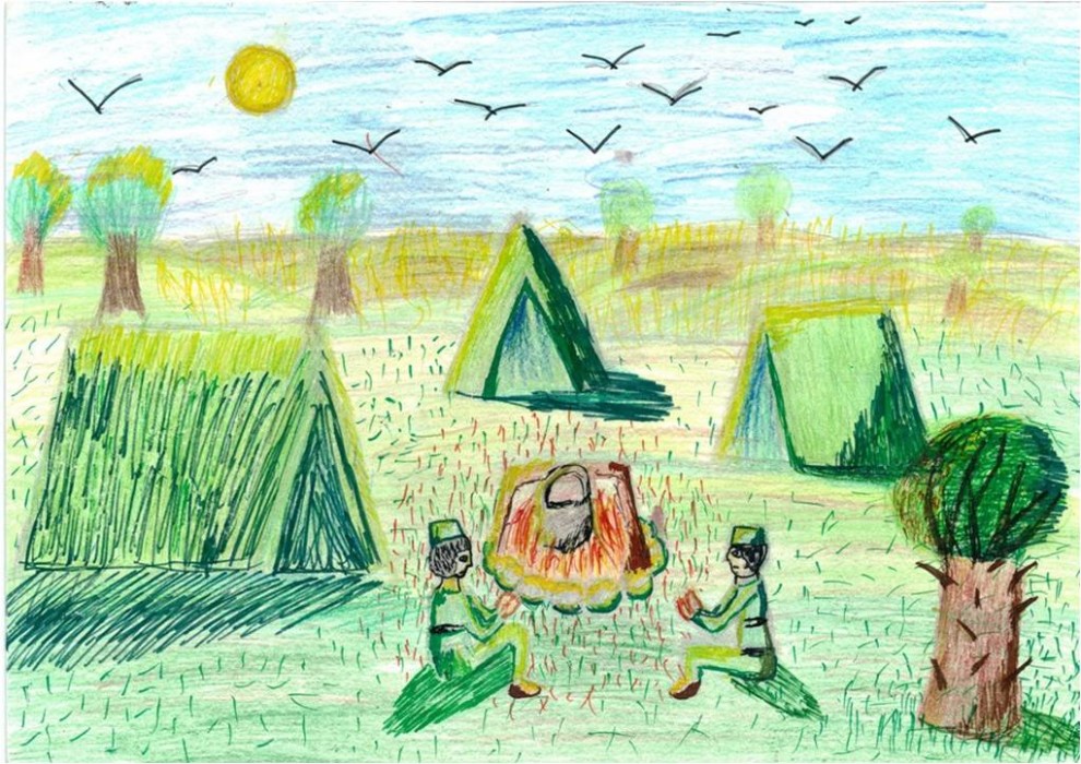 У костра (цв. карандаши) Номинация -Великая Отечественная в судьбе моего народа.