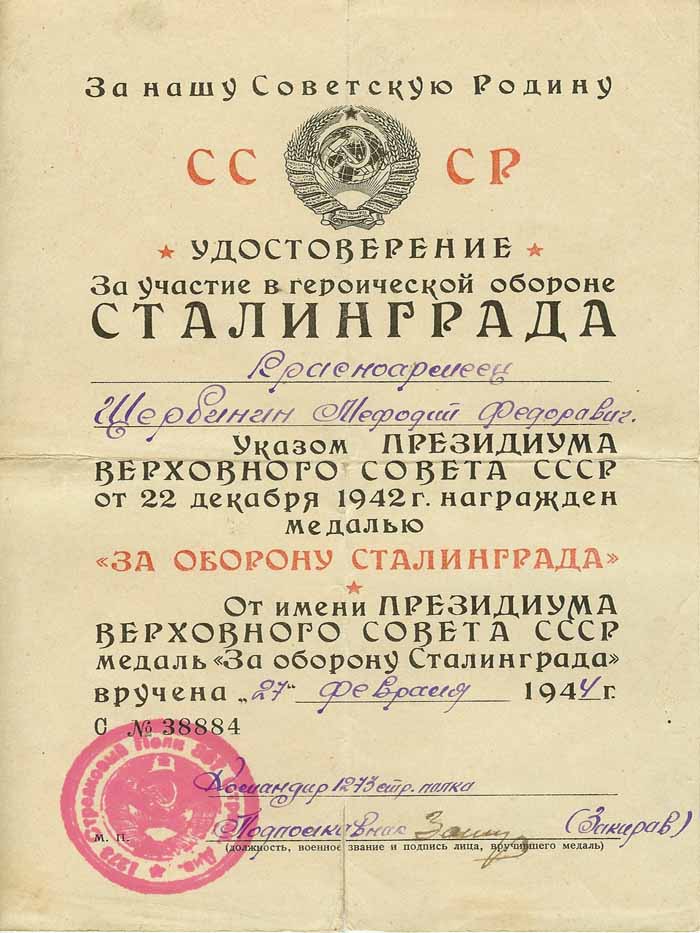 Семейные реликвии Щербинина Мефодия Федоровича