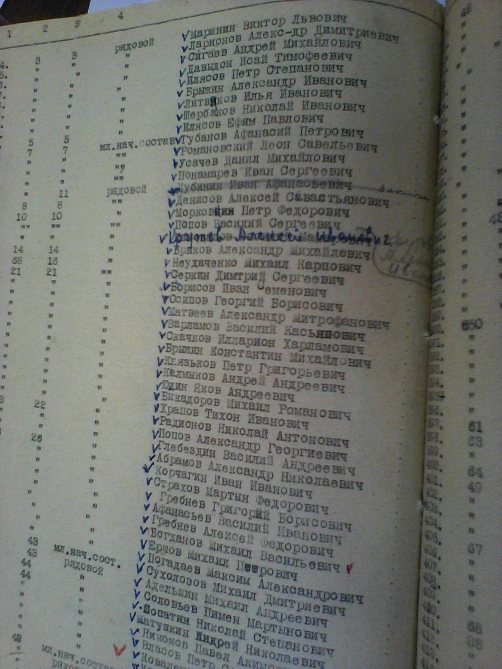 ПИСОК ПРИЗВАННЫХ В ИЮНЕ 1941