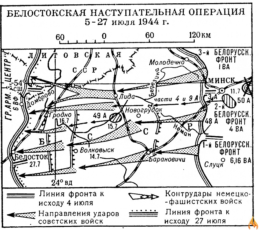 С 5 по 27 июля войска Белорусского фронта успешно провели Белостокскую операцию.
