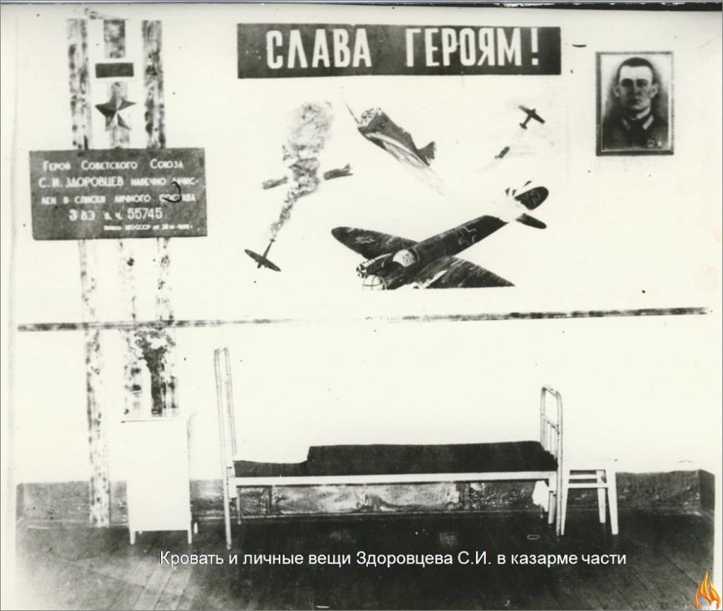 Здоровцев Степан Иванович В начальный период Великой Отечественной войны он, лётчик, одним из первых совершил воздушный таран и при этом остался жив. Прадедушка навечно зачислен в списки личного состава воинской части 3ВЭ в. 55745 Ленинграда приказом Мин. Обороны СССР № 121 от 30 апреля 1965 года. Там есть комната- музей, где находятся его кровать и личные вещи.