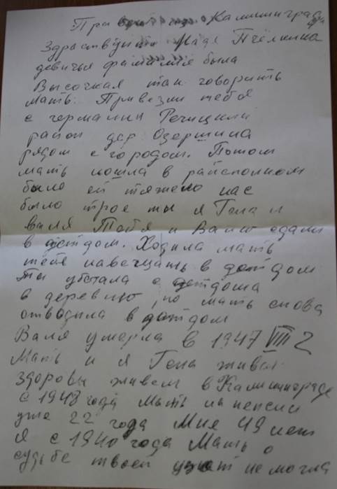 Переписка семьи Пчёлкиных