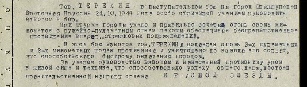 Терехин Алексей Тимофеевич, 1921 г.р., гв. лейтенант, награжден