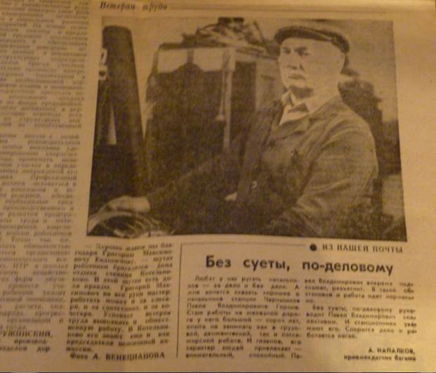 мирное время 1960 год. Местная газета "Искра"статья о Евдокимове Григории Максимовиче -машинисту на железной дороге.