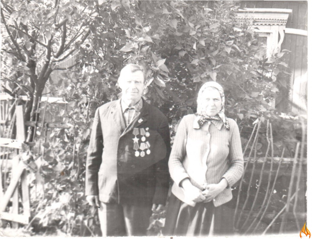 На фотографии изображён Ветеран Великой Отечественной войны Котыхов Федор Яковлевич с женой Фирсовой Акулиной Антоновной.