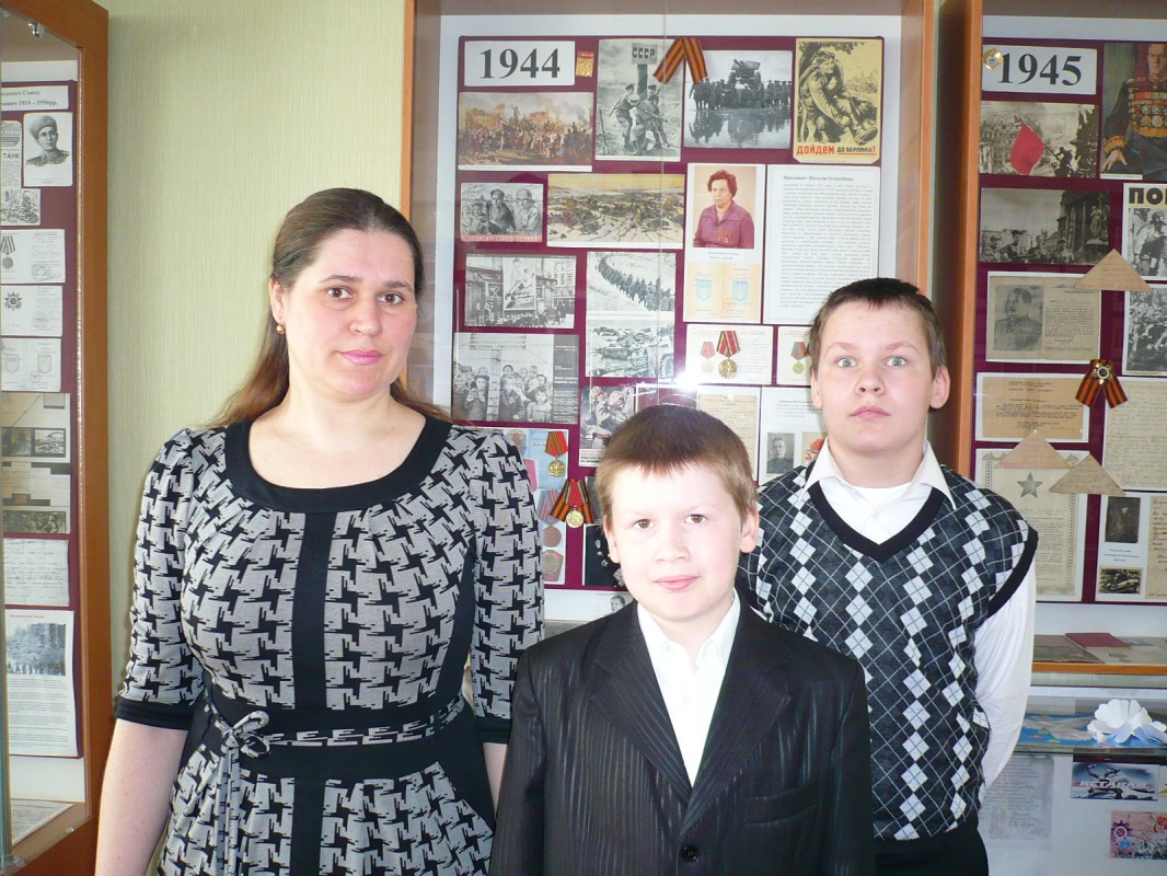 В историко-патриотическом центре Донецкой школы № 102. Внучка Натальи Алексеевны, Нестерова Оксана Александровна, учитель русского языка, правнуки Георгий и Максим, ученики 6 и 2 классов.