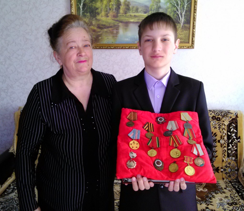 Я с бабушкой Александрой Николаевной, держу в руках семейные реликвии - награды моего прадеда.