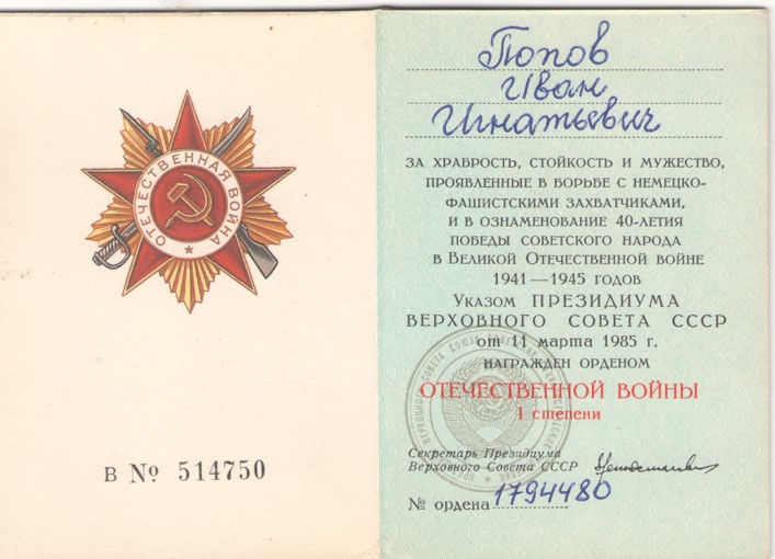 Семейные реликвии Попова Ивана Игнатьевича