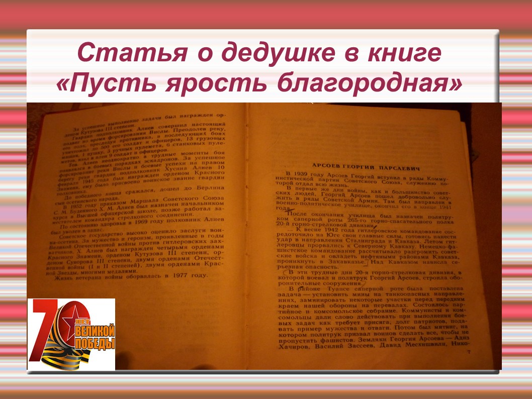 Семья, семейные реликвии Арсоева Георгия Парсаевича