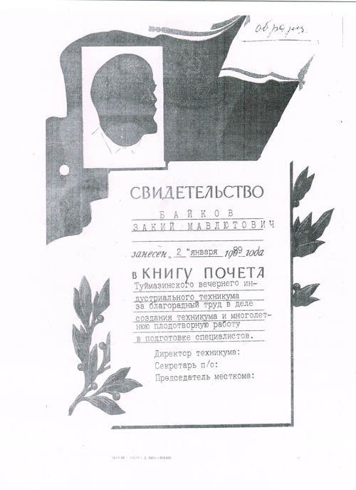 Байкова Закия Мавлютовича