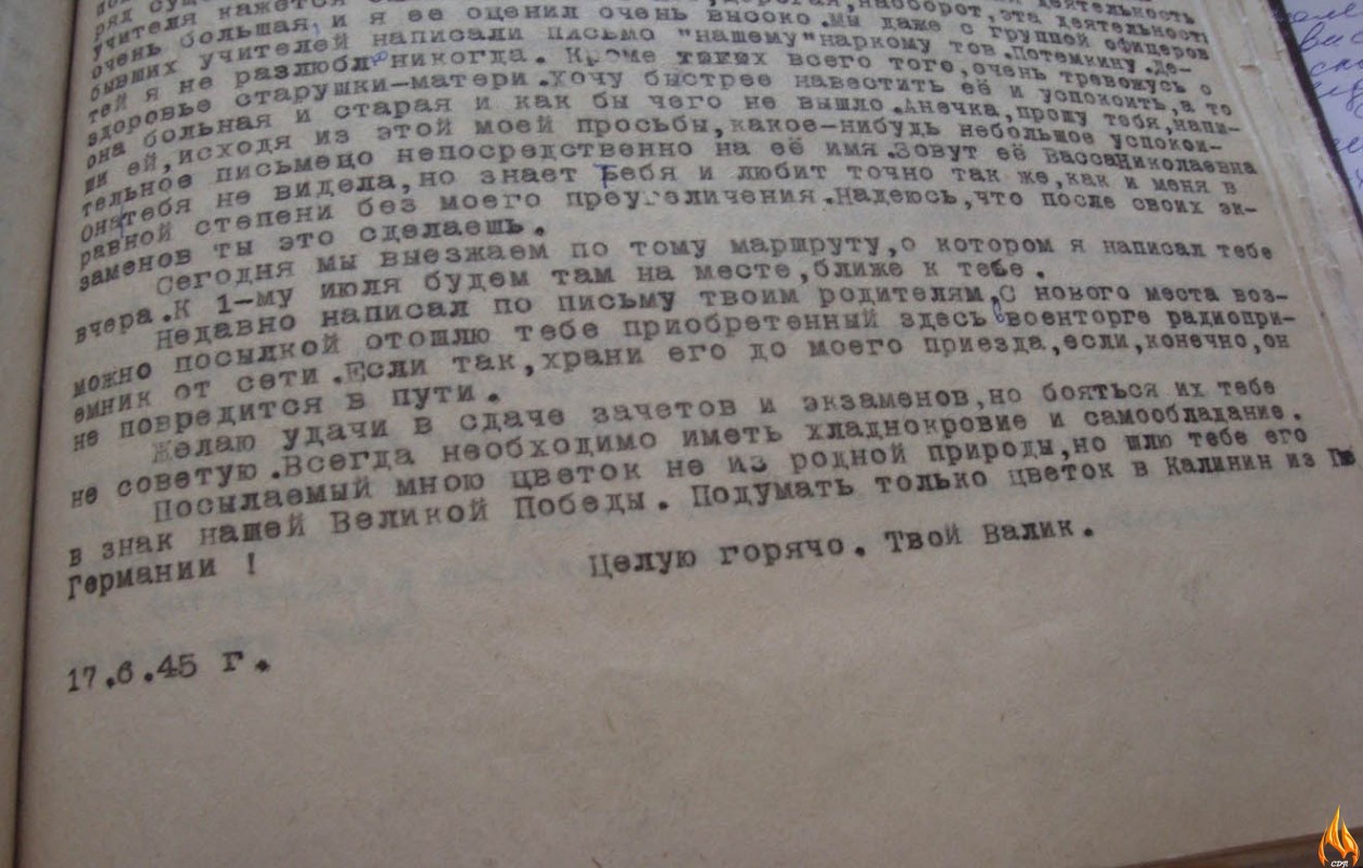 Письмо Кангина В.Н. от 17 июня 1945 г.
