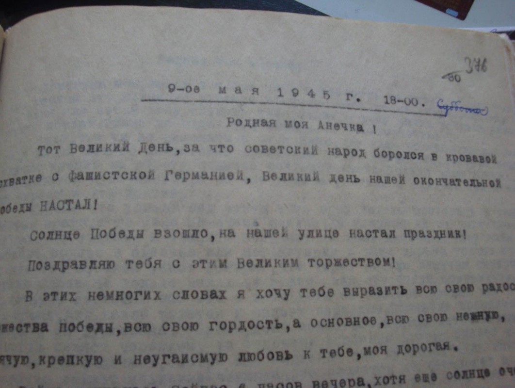 Письмо Кангина В.Н. от 9 мая 1945 г.