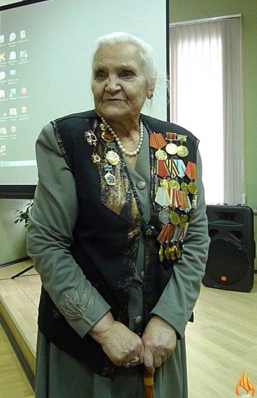 Младший сержант, командир отделения разведки, награждена орденом Отечественной войны II степени, медалями «За боевые заслуги», «За оборону Сталинграда» , «За оборону Заполярья».